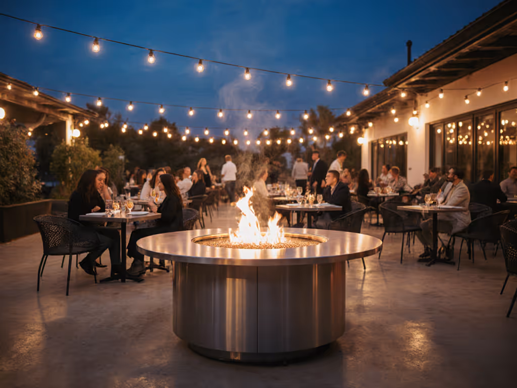 Residential fire pits may tolerate surface rust or intermittent ignition hiccups; hospitality equipment cannot. A single flame-out during a 50-person wedding rehearsal or a spark screen failure in a coastal resort can trigger liability, brand damage, and regulatory scrutiny. Avoid citations and closures by reviewing our fire pit regulations guide. This reality shapes material selection, engineering redundancy, and operational protocols. For model picks and ROI benchmarks tailored to restaurants, hotels, and bars, see our commercial hospitality fire pit roundup.